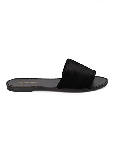 Product DescriptionThese simple sandals are made with a velvet upper, open toe and single band at vamp.0