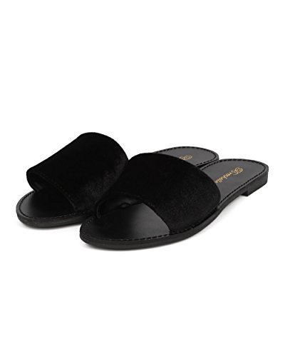 Women Velvet Slide - Casual, Lounge, Everyday - Open Toe Slipper - GG15 By Breckelles