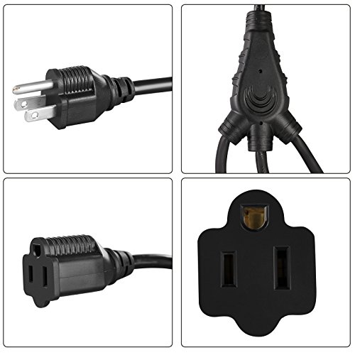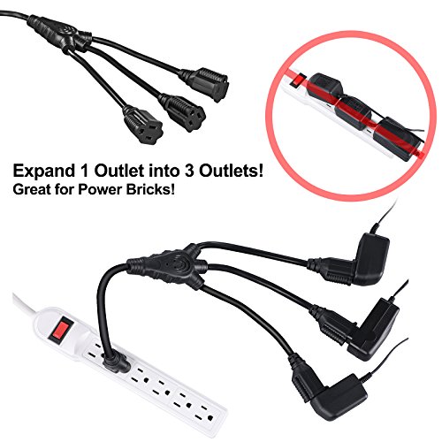 EXTENSION CORD SPLITTER 1 TO 3: Outlet saver to save sockets and maximize the usage of power strips & wall outlets; 3-way power strip liberator great for power adapters and bulky plugs; NEMA 5-15P to NEMA 5-15R x 3 electrical outlet extender