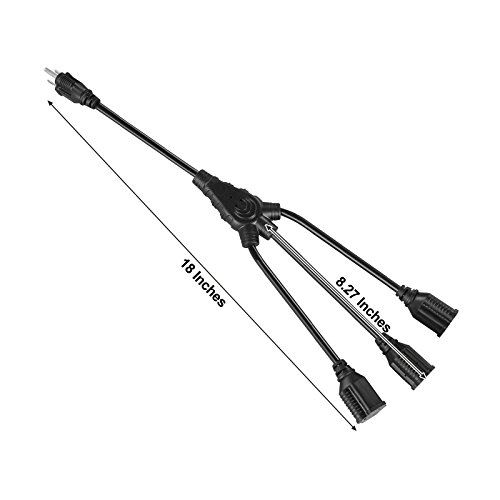 Dewenwils Power Cord Splitter Cable 3 Prong Extension Cord Triple Outlet, 16AWG/ 13A / SJTW, Power Strip Liberator Outlet Saver (18 Inch, 3 Pack), ETL Listed, Black
