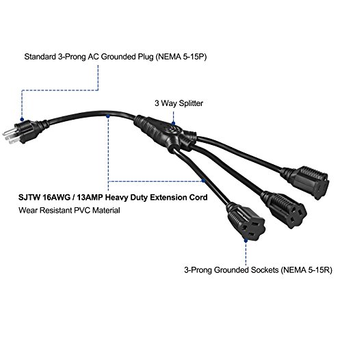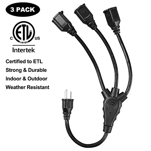 RUGGED CONSTRUCTION: 16AWG/13A power cord splitter is built with all-copper wire, reinforced blades, and double jacketed cords, features a fully molded design to withstand a lifetime of wear and tear; ETL certified