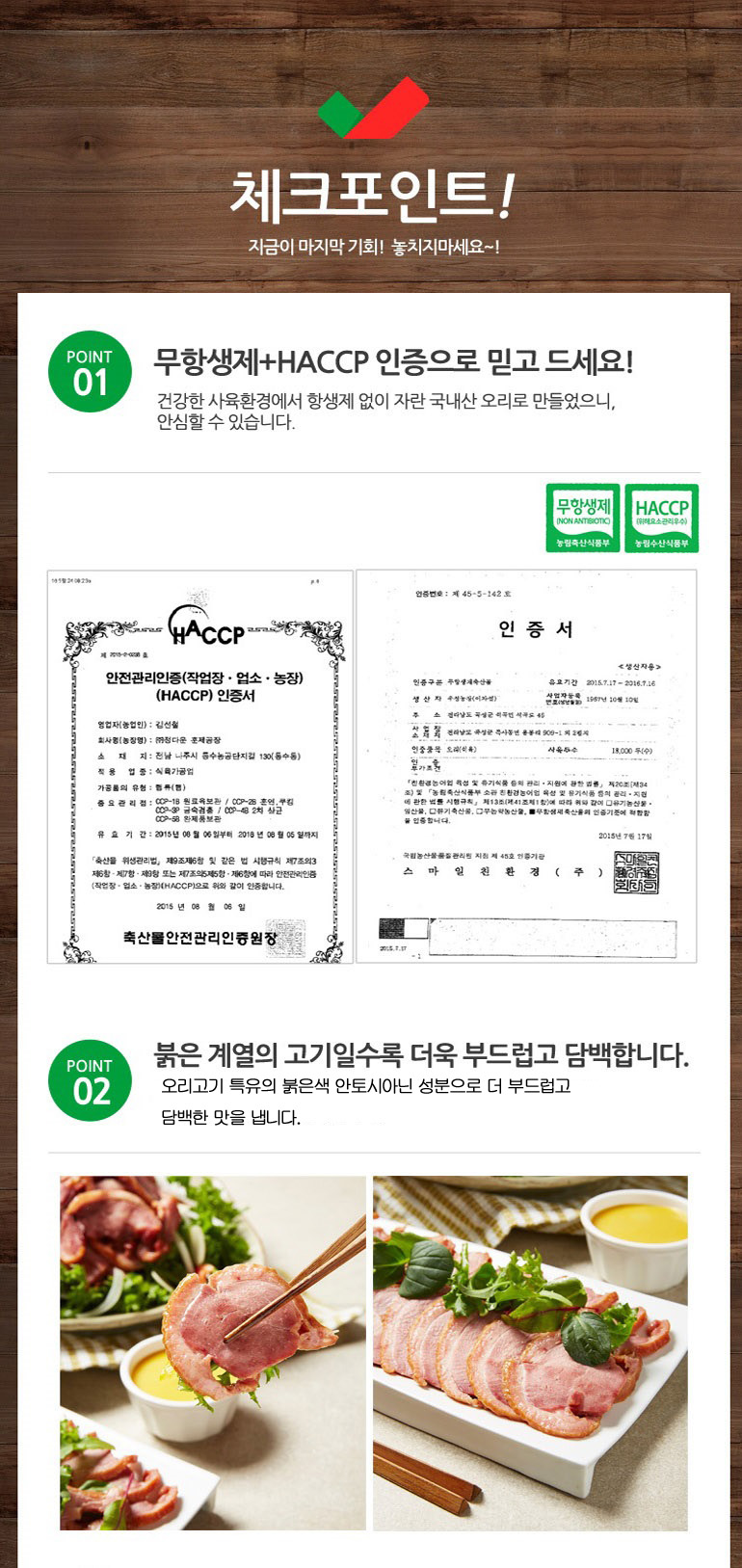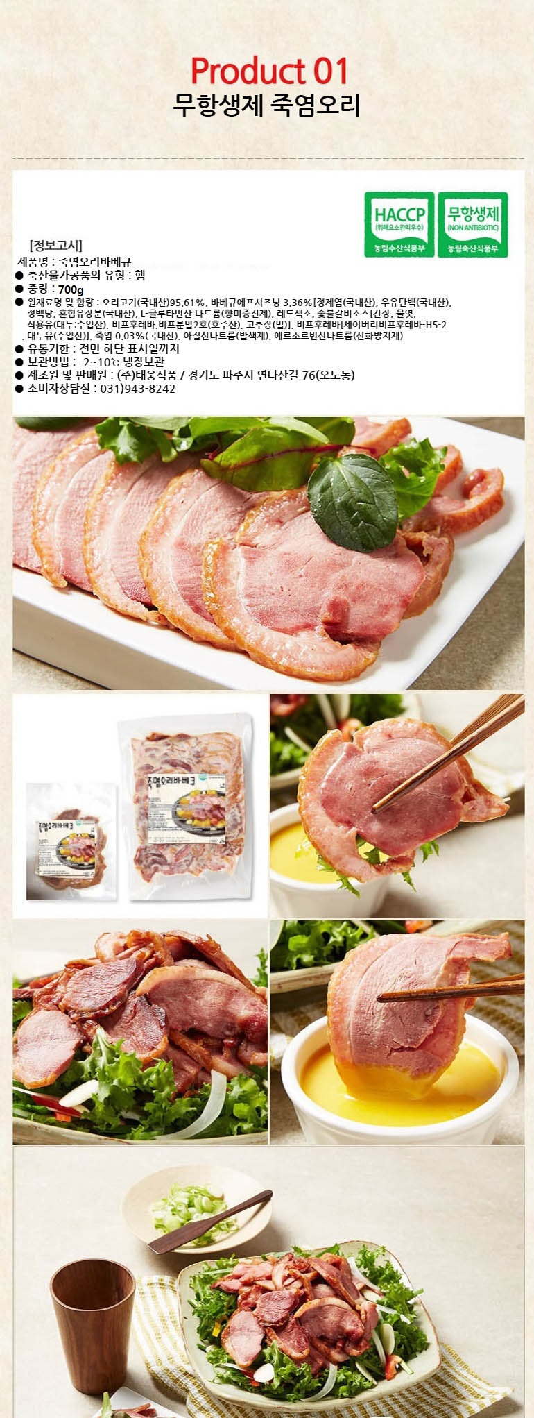 - 원재료명 및 함량 오리고기(국내산)95.61%, 바베큐에프시즈닝 3.36%정제염(국내산), 우유단백(국내산),