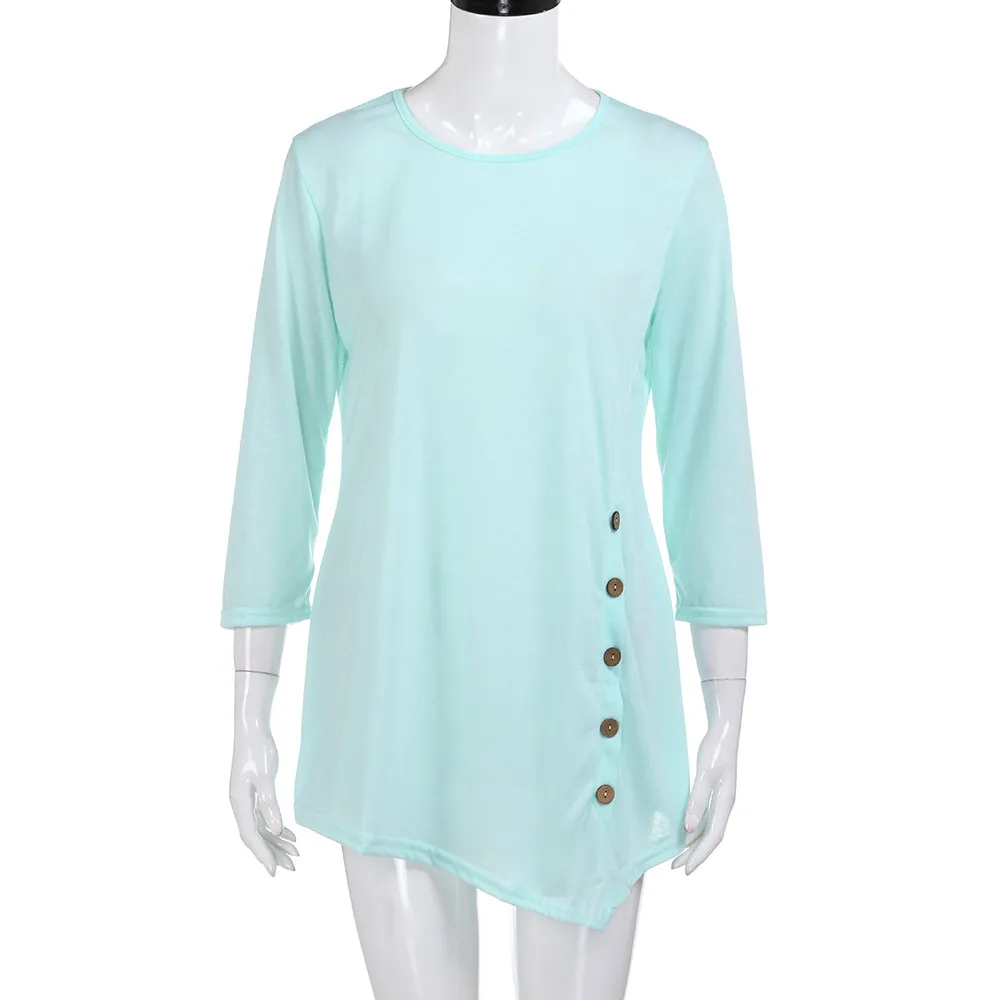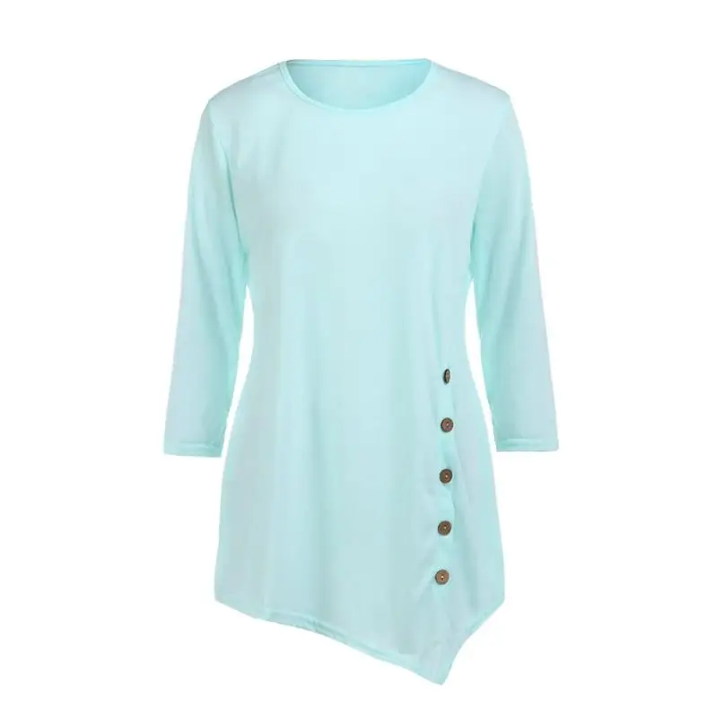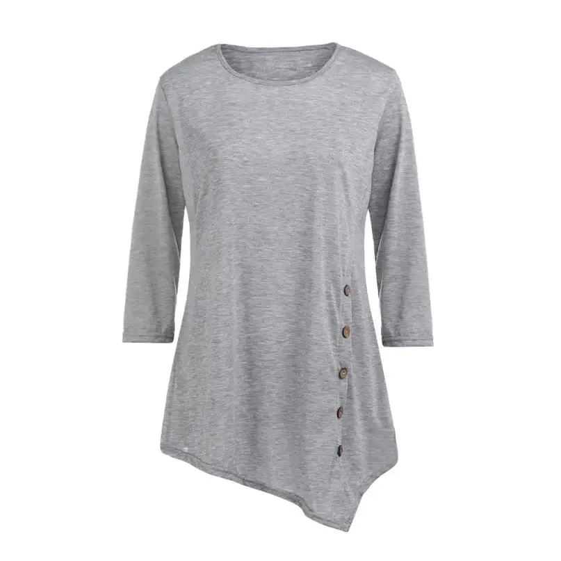 Model Number:Women Long Sleeve Loose Button Trim Blouse solid color Round Neck