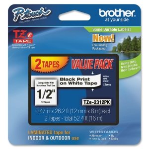 -. Title : New - 2 Pack Black on White 1/2" by Brother International - TZE-2312PK