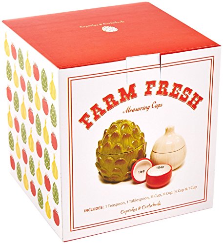 Two's Company Cupcakes and Cartwheels Veggie Salt Measuring Cup Set in Gift Box
