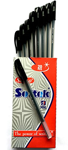 20 X Saino Softek Smooth Writing Black INK Ball Point Pens ( Non Refillable ) Direct Ink Fill Technology gives you perfect ink flow for smoothest writing, Black, 20 count