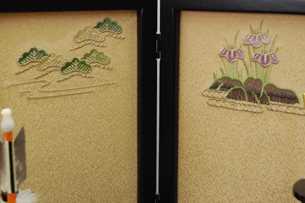 ・台座・屏風等には落ち着いた色目の5月人形セット。