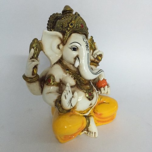 The Blessing. A Colored & Gold Statue of Lord Ganesh Ganpati Elephant Hindu God Made From Marble Powder in India