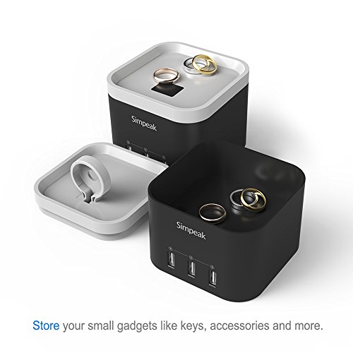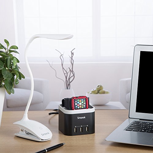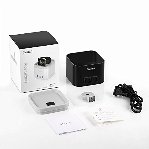 Simpeak 4 Port USB Charger Station for Apple Watch[Nightstand Mode], with Phone Holder Charger Stand for iPhone 5/6/7 and other Smartphone,iPad - Black