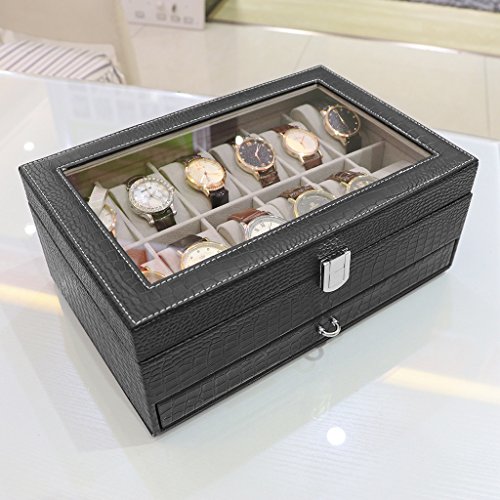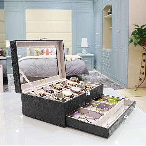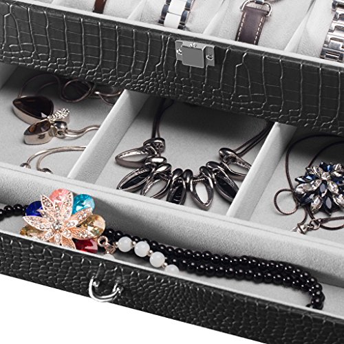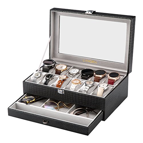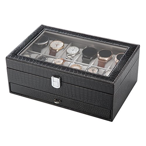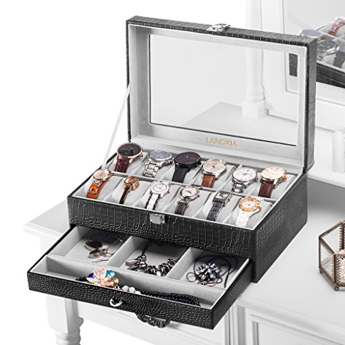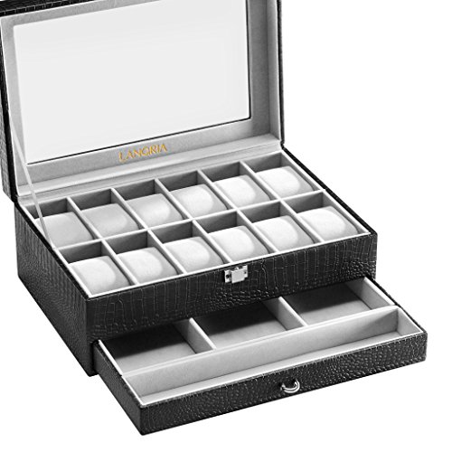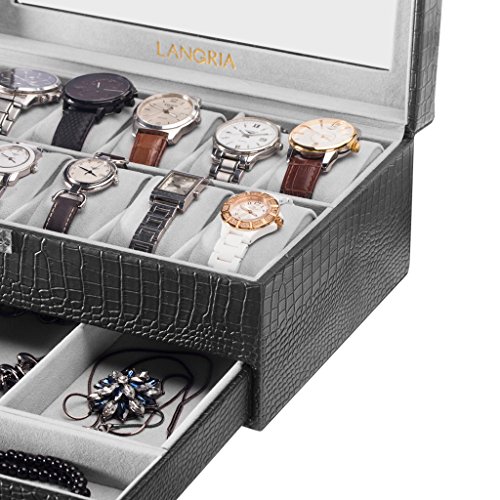 (LANGRIA)/Nursery/Furniture/DIRECT FROM USA/LANGRIA 12-Slot Watch Box with Bottom Jewelry Tray Faux Crocodile Leather Exterior Soft Lining ...