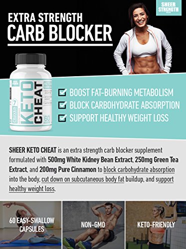 SLIM DOWN & LOSE WEIGHT NOW - Sheer Keto CHEAT is an extra strength ketogenic carb blocker supplement formulated with 500mg White Kidney Bean Extract, 250mg Green tea Extract, and 200mg Pure Cinnamon to block carbohydrate absorption into the body, cut down on subcutaneous body fat buildup, and support healthy weight loss. Sheer Keto CHEAT is perfect for any women or men looking to slim down and tone up as part of a ketogenic or low-carb diet.