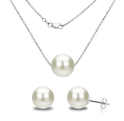 -. Feature : Sterling silver chain necklace featuring simple centerpiece of a single white freshwater cultured pearl in round shape in floating movement. Along with the necklace, you also get earrings set. The earrings compliment the necklace and help you complete the look. / This freshwater cultured pearl comes with natural high luster and shine which makes them look extremely exquisite. Our pearls represent the finest in pearl selection, hand-picked for its luster, cleanliness quality, and color. / Wear these pearl fine jewelry set to an evening event with an elegant dress or wear it to work with your formal attire. Pearls are a necessity for everyone's jewelry collection. / Beautiful - This chain necklace and earrings set are must-have for your jewelry collection and look just beautiful straightaway. You could wear it as a set or separetly. This is the set for yourself or for the women you value and love. / The natural properties and process of pearl formation define the unique beauty of each pearl. The image may show slight differences in texture, color, size, and shape.