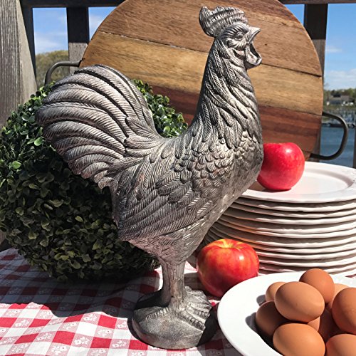 - WELL SIZED this rooster measures 10 5/8 D x 5 1/8 W x 15 3/4 inches. At equal ease in the house this piece is wonderful for use atop kitchen counters, as table top centerpieces and on mantles.