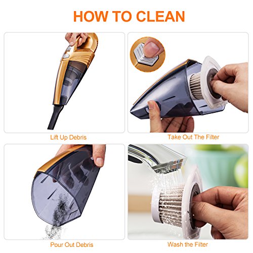 REMOVABLE & WASHABLE HEPA FILTER: We support a bonus HEPA filter, which is detachable and easy to be cleaned. It will be more powerful if start the car first while use the car vacuum and the filter should be cleaned up every time of use.
