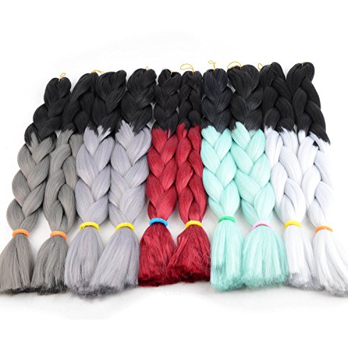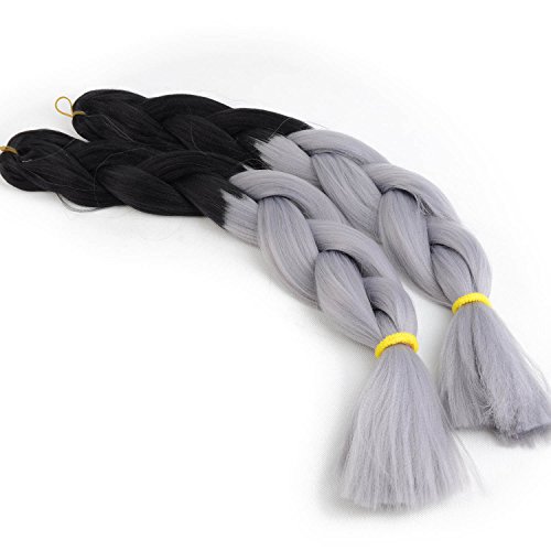 Braiding Hair Specifications 1)Item Name:Kanekalon Ombre Jumbo Braiding Hair 2)Hair Length:24 Inch,5-6 Pcs for a full head 3)Hair Weight:100g/piece 4)Hair Color:Ombre Jumbo Braid Hair, Black/ Silver Gray 5)Hair Quality:Heat Resistant Synthetic Fiber,Double Drawn Thick Ended Our Features Razeal Only Sales premium Jumbo Braiding Hair Which is Made of Synthetic Fiber Heat-resistant.It feels Soft, Super Light, No Tangle. There are 10 Colors for Your Choice and Customization is available.Please Free to Contact Us, If You Have Any Question. 0