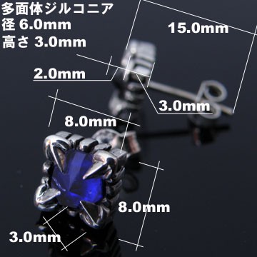 【サイズ】W8.0mm×H15mm×D8.0mm(全体)  W8.0mm×H8.0mm(TOP) 【素材】 シルバー925 CZ(ブルー)6.0mm×6.0mm×3.0mm