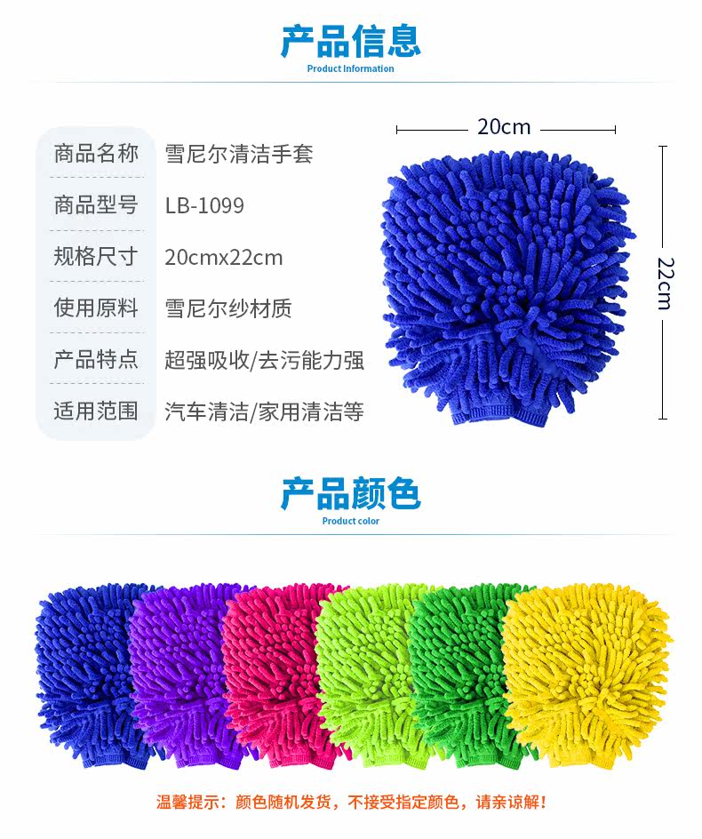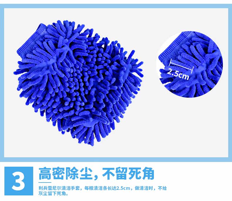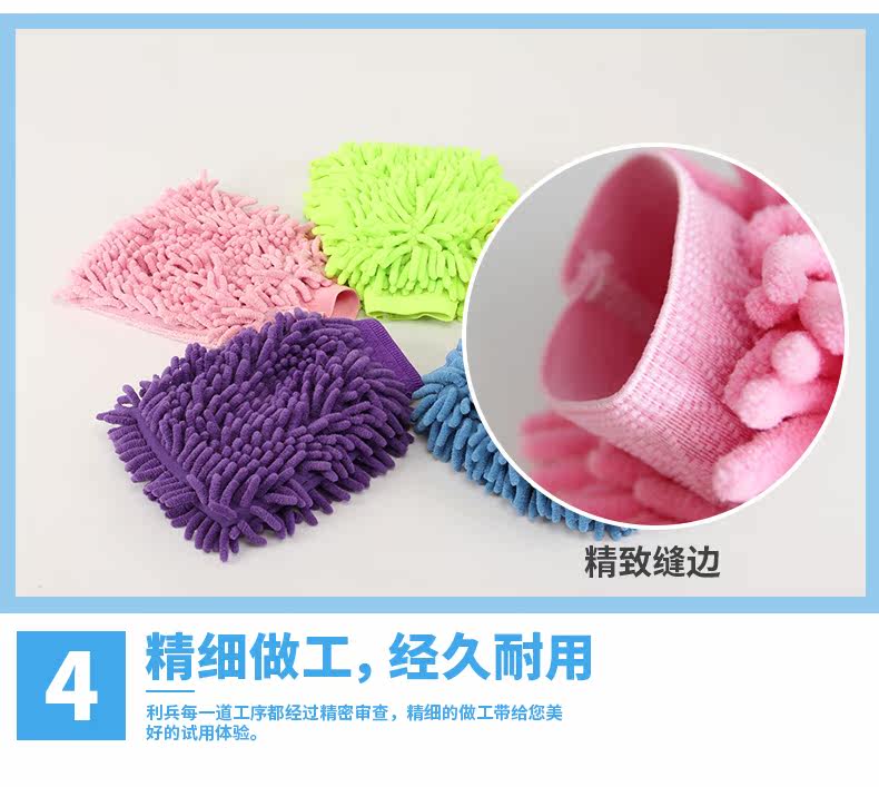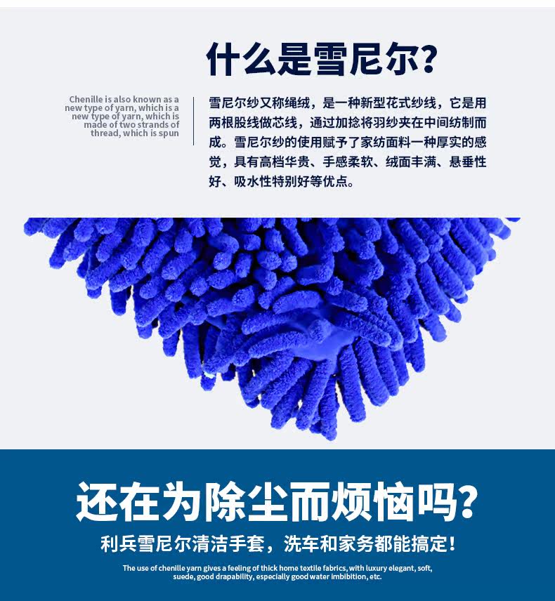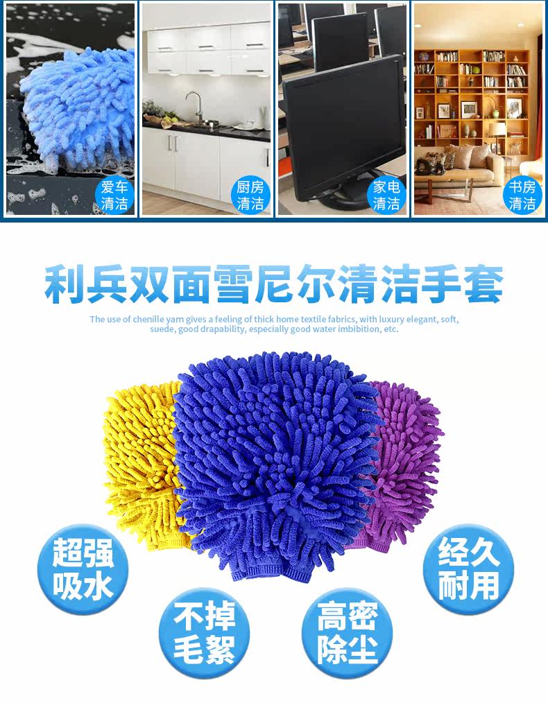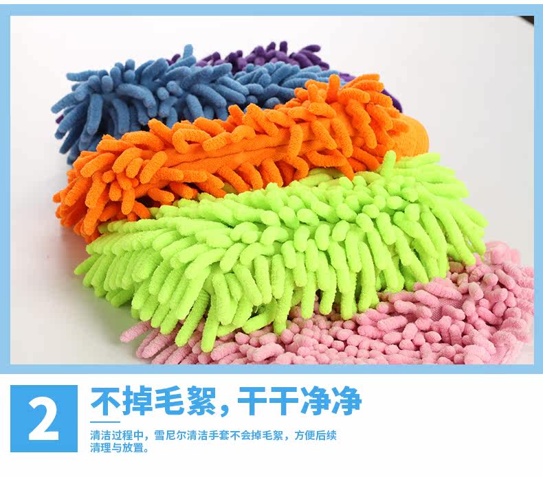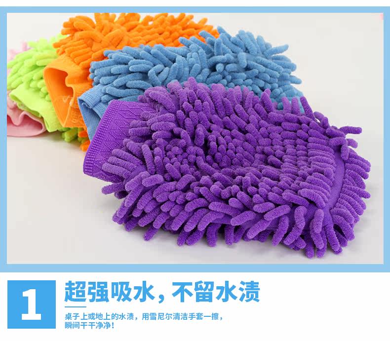 双面雪尼尔家务清洁手套 超细纤维擦洗车抹布手套 除尘手套