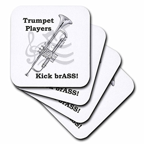 3dRose cst_1024_3 Trumpet Players Kick Brass Ceramic Tile Coasters, Set of 4