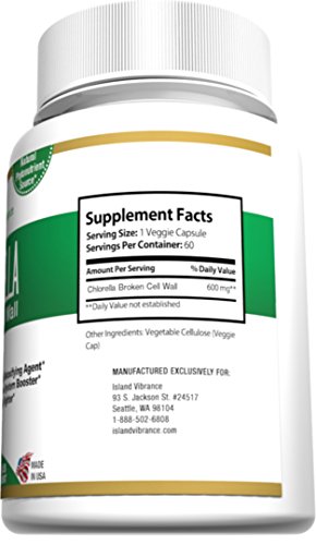 -. Title : Chlorella Broken Cell Wall Algae Powder Capsules - Potent All Natural Green Superfood Supplement for Detox and Cleanse, Weight Loss, Increased Energy - 60 Vegetarian Caps, Made in USA