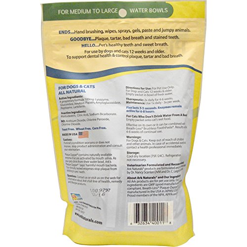 -. Title : Ark Naturals Breath-Less Brushless-ToothPaste and Ark Naturals Breath-Less Plaque-Zapper Fizzy for Dogs and Cats, 12 oz. (320g) and 30 Pouches .07 oz (2 g)
