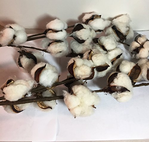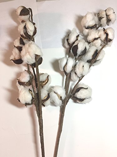 - 2 pack of Realistic Cotton Boll Stems, 26 inches tall, 11 cotton buds on each. Each bud is approx 2 in across.