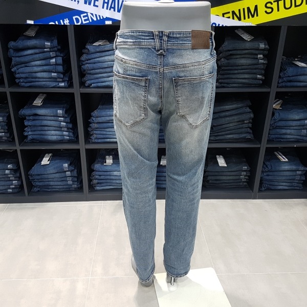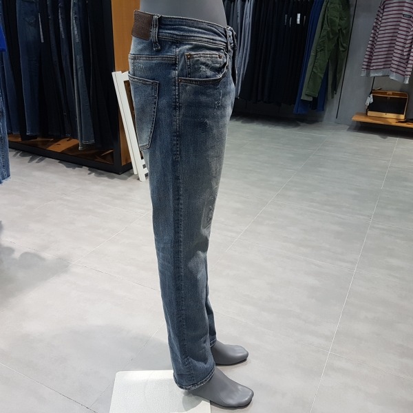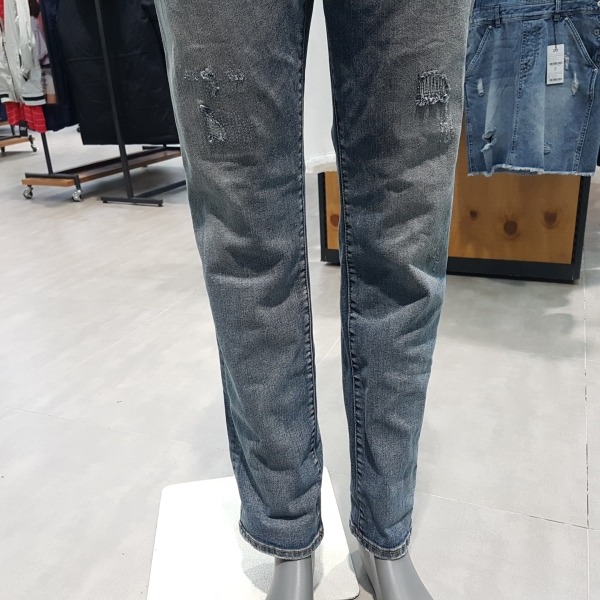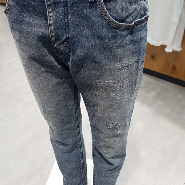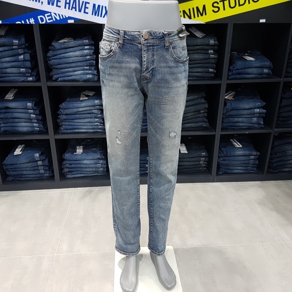 M톤 칼라의 빈티지 구제 데님.전체적인 핸드브러시 작업으로 빈티지한 바닥감을 잘 살린 구제 데님.