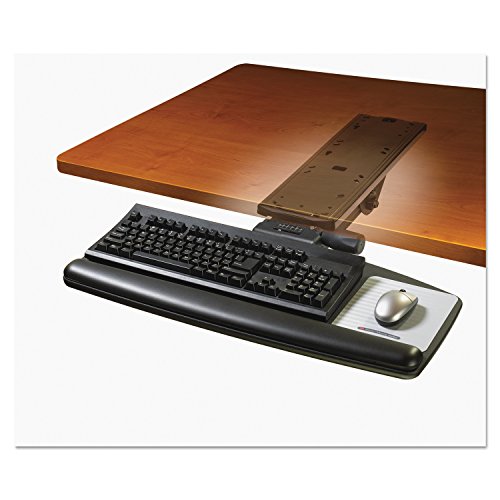 -. Title : 3M Easy Adjust Keyboard Tray with Standard Platform, 17 3/4 Inch Track, Antimicrobial Gel Wrist Rest