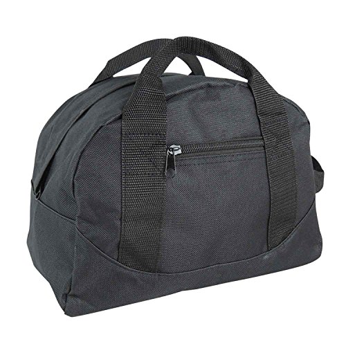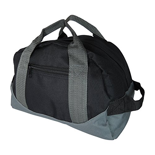 -. Feature : FEATURES: Zippered main compartment w/ zippered front pocket, top handle and side handle. / MATERIAL: 600D Polyester / SIZE: 12" X 8" X 8" / COLORS: Royal/Black, Gold/Black, Red/Black. / INTENDED USE: Gym, Sports, Travel, Carry-on, Lage, Camping, Hiking and More!