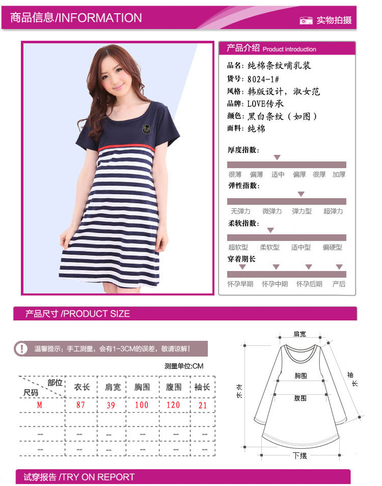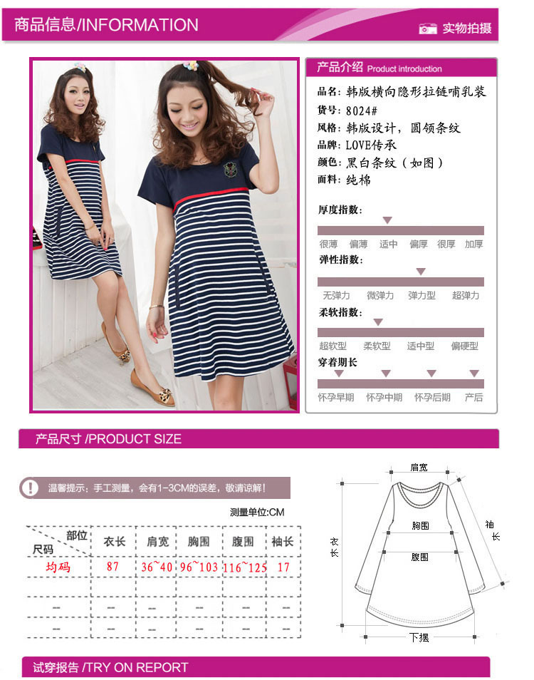 | Size: Striped trend has not stopped. Striped impression is very fresh、 very neighborhood feel、 made him look like. The new summer skirt、 a blend of versatility、 not only can be worn during pregnancy、 breast-feeding has both functional Oh、 invisible zipper chest、 pregnancy can be very convenient to the baby breast-feeding it. Very fresh and generous. Pregnant women should not necessarily obvious wearing maternity clothes、 also can have several styles. Like MM quickly snapped a bar. Customer service •We strive for 100% customer satisfaction on our business、 we will do our best to service every of our customer. •If any questions、 please contact us first、 we will do our best to response in 12 business hours.