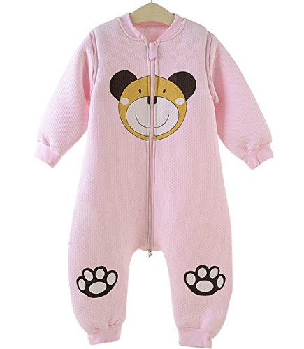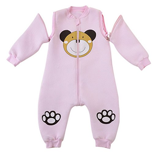 Feature : Winter baby sleeping bag with easily removable long sleeves featuring bear print. Can be worn in two ways:Vest or Long Sleeve sleeping sack. / Made of Environmentally Friendly Cotton,which is Soft and comfortable,Antibacterial and with light weight. / Your Child can walk around safely in this wearable blanket when awake and feet can be put inside the loose fit sleeping bag during sleep time / Both shoulder snaps and zipper from 23 sides design for easy dressing and diaper changes without catching a cold. / Humanization design: Rib Cuff keeps your baby's hand and feet warm while the piece of cloth above the zipper keep the zip away from the skin.