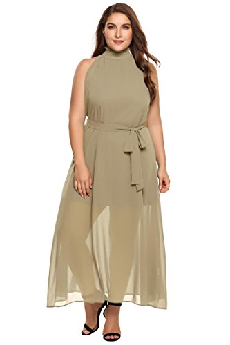 Zeagoo Womens Plus Size Chiffon Sleeveless Maxi Formal Dresses Solid Belted Party Dress Green 20 Plus