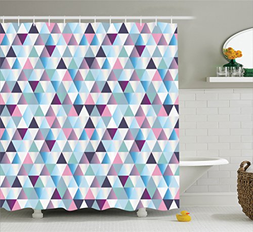 Ambesonne House Decor Collection, Diamonds Triangle Abstract Pattern and Geometric Fashion Stylish Print, Polyester Fabric Bathroom Shower Curtain Set with Hooks, Pink Navy Blue Purple White