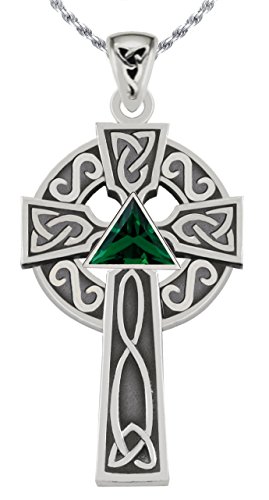 -. Title : 1.5in 0.925 Sterling Silver Simulated Emerald Irish Celtic Knot Cross Pendant Necklace