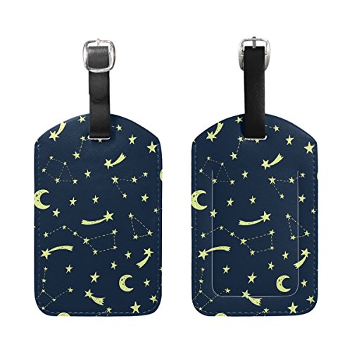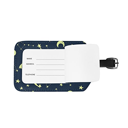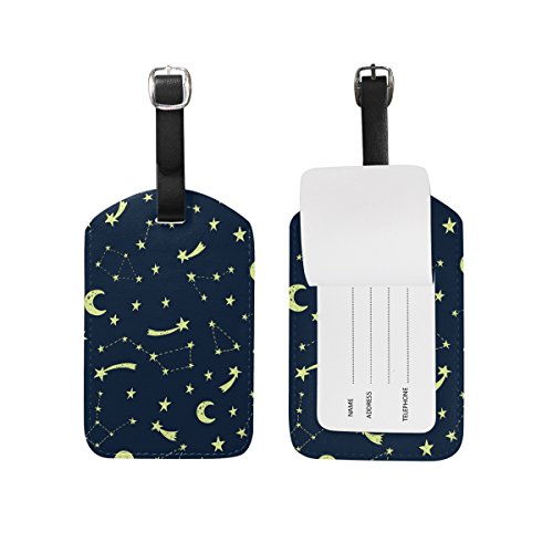 (My Little Nest)/Accessories/Luggage, Bags Travel/DIRECT FROM USA/Travel Luggage Tag Night Sky Shining Stars Planets PU Leather Baggage Suitcase Tag Name Address...
