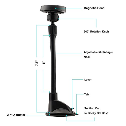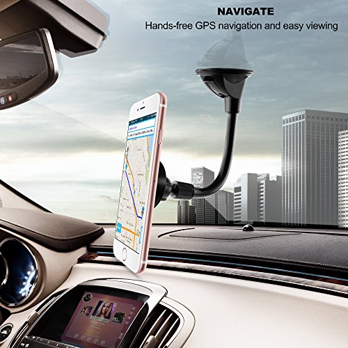 Ipow Long Arm Universal Magnetic Cradle Windshield Dashboard Cell Phone Mount Holder With Soft Firm Goose Arm, Enhanced Suction Cup