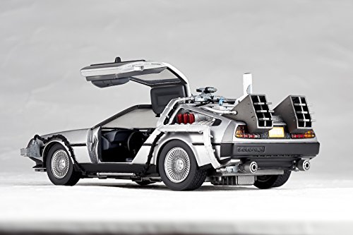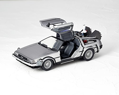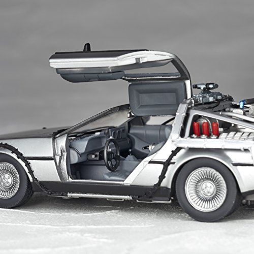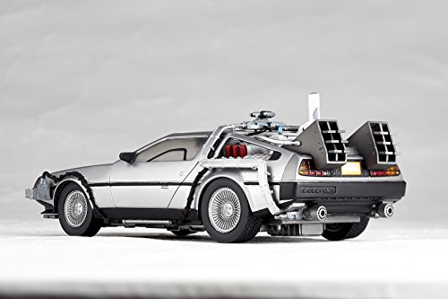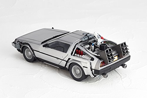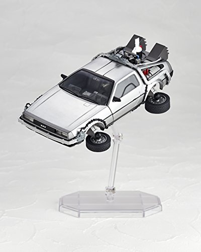 原型制作:真鍋正一●ガルウィングのドアは上下に開閉。車内は細かな部分まで再現されています。●タイヤを左右に引き出し、倒す事でバック・トゥ・ザ・フューチャー2劇中の印象的な飛行シーンを再現できます。●車両後部 次元転移装置のミスターフュージョンはリストジョイントで蓋を開閉する事が出来ます。●炎のエフェクトパーツが付属。劇中のタイムスリップシーンを再現可能。●付属のディスプレイベースを使用すれば飛行状態でディスプレイする事もできます。Feature