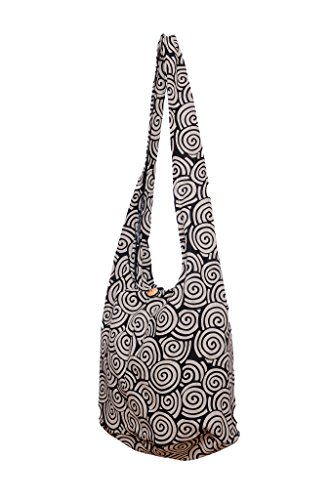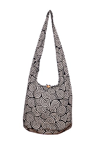 Avarada Cotton Hippie Hobo Sling Crossbody Bag Bohemian Bag Spiral Black