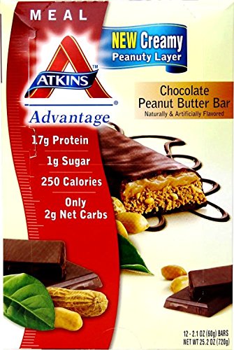 -. Binding : Grocery -. Brand : Atkins -. EAN : 0637480025010 -. Feature : Good Source of Calcium / 19 Vitamins and Minerals / This product can be used in all phases of the Atkins Diet / 12 bars / Net weight 25.2 oz -. IsAdultProduct : 0 -. Label : Atkins -. LegalDisclaimer : Statements made, or products sold through this web site, have not been evaluated by the Food and Drug Administration. They are not intended to diagnose, treat, cure, or prevent any disease. Information provided on this site is for informational purposes only and is not intended as a substitute for advice from your physician or doctor or any information contained on or in any product label or packaging. Always consult with a physician or licensed doctor before starting any diet, exercise or supplementation program, before taking any medication, or if you have or suspect you might have a problem. -. Manufacturer : Atkins -. Model : 637480025010 -. MPN : 6.3748E+11 -. NumberOfItems : 1 -. PackageQuantity : 1 -. PartNumber : 6.3748E+11 -. ProductGroup : Grocery -. ProductTypeName : GROCERY -. PublicationDate : 2014-06-13 -. Publisher : Atkins -. ReleaseDate : 2014-06-13 -. Size : 25.2 Ounce -. Studio : Atkins -. Title : Atkins Advantage Chocolate Peanut Butter Bar, 25.2 Ounce -. UPC : 637480025010