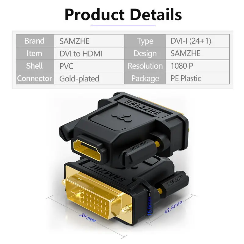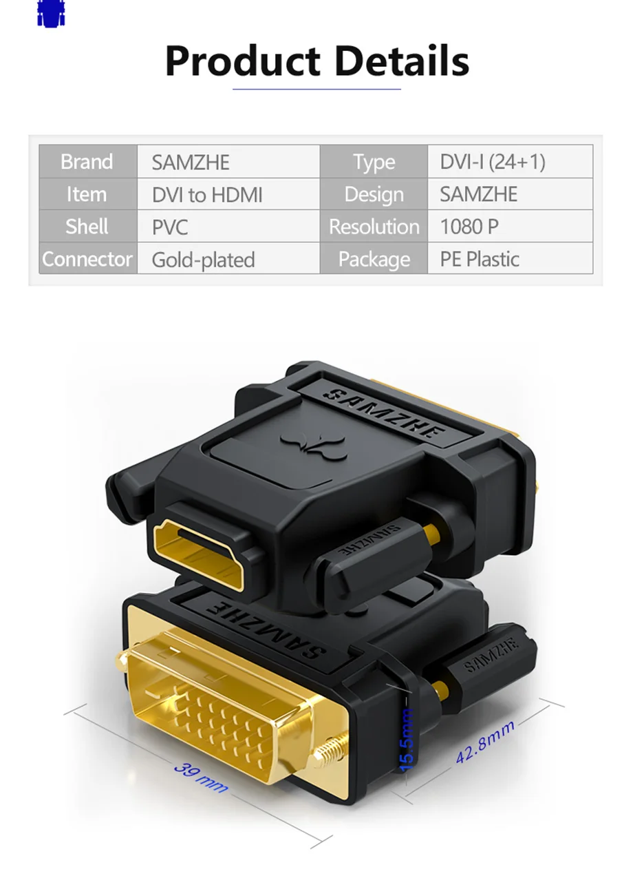 feature 4:HDMI male to DVI female 24+5 Adapter