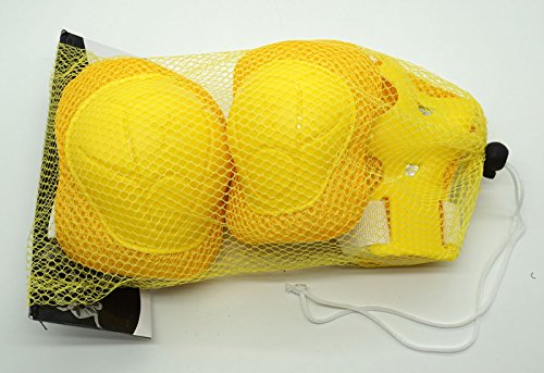 -. Feature : Good quality. Cotton Thicker and Wider. You will not be disappointed. You will not be disappointed. (The pictures taken in kind, Please look at the picture) / Material: breathable net cloth + PE plastic shell (sponge pad inside) / color: Yellow / This Protective Gear is Suitable for 3-8 children to use. / Diagonal Size: Knee pads: 6 inch. elbow pads: 5.4 inch. Hand pads: 5 inch