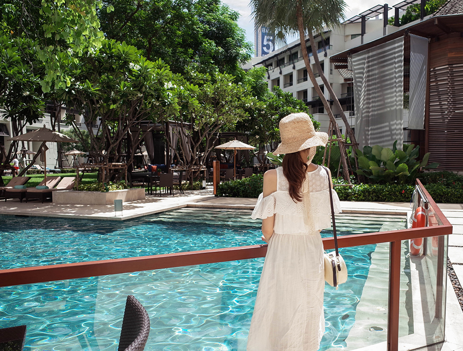 숄더컷 디테일로 더욱 사랑스러운 아이로 리조트룩
