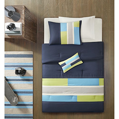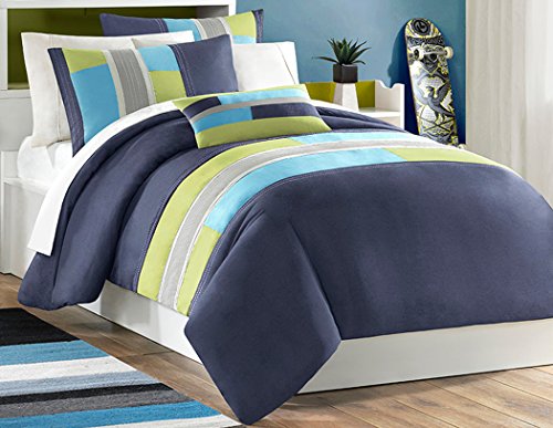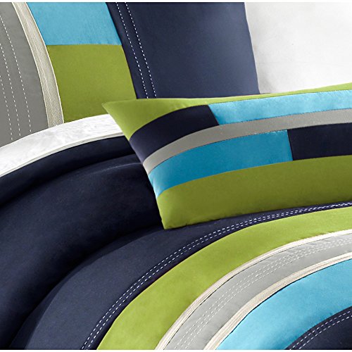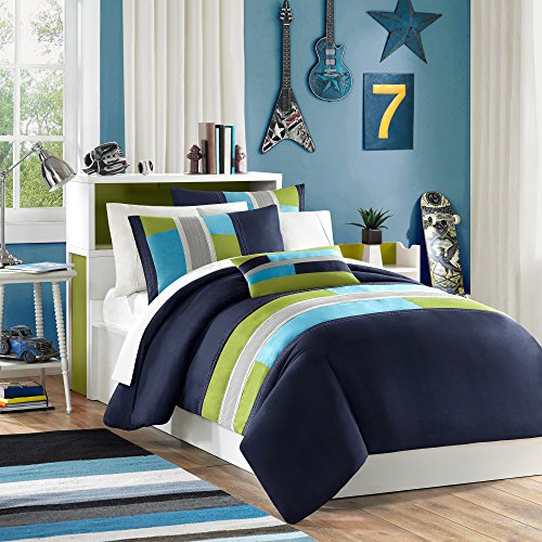 Studio : JLA Home Publisher : JLA Home Product Description The Mi Zone Switch Duvet Cover Set offers a fresh update to your room. The ultra-soft microfiber duvet cover boasts a striped pieced design in bold colors, for a casual look with an urban feel. Top stitching and twill tape details highlight the design, creating an eye-catching contrast. Coordinating sham(s) and one decorative pillow reiterate the duvet cover's design to complete the slick ensemble. Machine washable for easy care, this duvet cover set provides a fun and stylish update to your bedroom. Button closures allows you to place a down comforter insert inside the duvet cover for added warmth and comfort.FeaturesSet includes: One (1) Comforter, Two (2) Standard Shams, One (1) Decorative PillowFace material: 100-percent polyesterInside ties to secure comforter insertDuvet cover set does not comforter insertTwin/ Twin XL dimensions:Duvet Cover: 68 inches wide x 90 inches longStandard Sham: 20 inches wide x 26 inches longDecorative Pillow: 10 inches wide x 18 inches longFull/ Queen dimensions:Duvet Cover: 88 inches wide x 90 inches longStandard Shams: 20 inches wide x 26 inches longDecorative Pillow: 10 inches wide x 18 inches longKing/ California King dimensions:Duvet Cover: 104 inches wide x 90 inches longKing Shams: 20 inches wide x 36 inches longDecorative Pillow: 10 inches wide x 18 inches longThe digital images we display have the most accurate color possible. However, due to differences in computer monitors, we cannot be responsible for variations in color between the actual product and your screen.The digital images we display have the most accurate color possible. However, due to differences in computer monitors, we cannot be responsible for variations in color between the actual product and your screen. 0