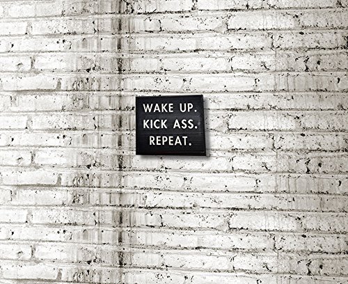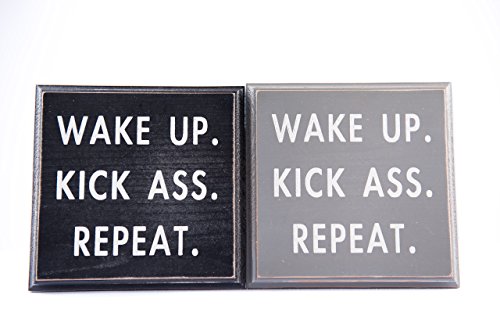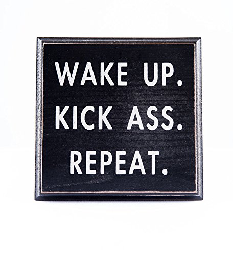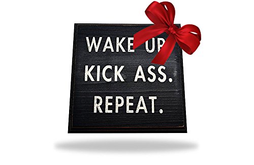 Wake Up. Kick Ass. Repeat. Wood Sign Black