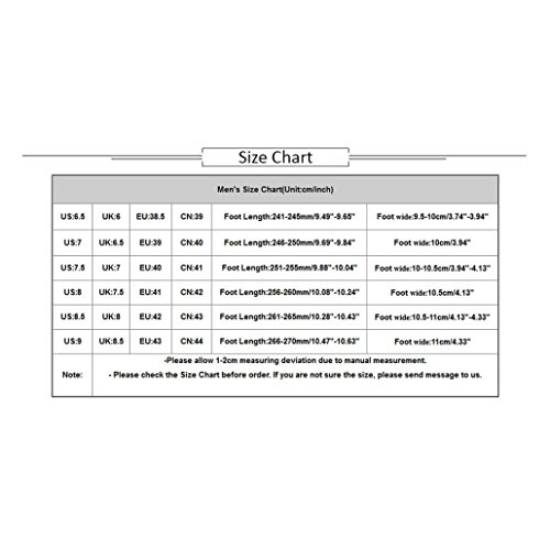 Binding : Apparel Product Description Occasion: IndoorOutdoor,Fashion,Leisure Package: 1 Pair Men Shoes(not including shoebox) US:6.5 UK:6 EU:38.5 CN:39 Foot Length:241-245mm/9.49"-9.65" Foot wide:9.5-10cm/3.74"-3.94" US:7 UK:6.5 EU:39 CN:40 Foot Length:246-250mm/9.69"-9.84" Foot wide:10cm/3.94" US:7.5 UK:7 EU:40 CN:41 Foot Length:251-255mm/9.88"-10.04" Foot wide:10-10.5cm/3.94"-4.13" US:8 UK:7.5 EU:41 CN:42 Foot Length:256-260mm/10.08"-10.24" Foot wide:10.5cm/4.13" US:8.5 UK:8 EU:42 CN:43 Foot Length:261-265mm/10.28"-10.43" Foot wide:10.5-11cm/4.13"-4.33" US:9 UK:8.5 EU:43 CN:44 Foot Length:266-270mm/10.47"-10.63" Foot wide:11cm/4.33" 0