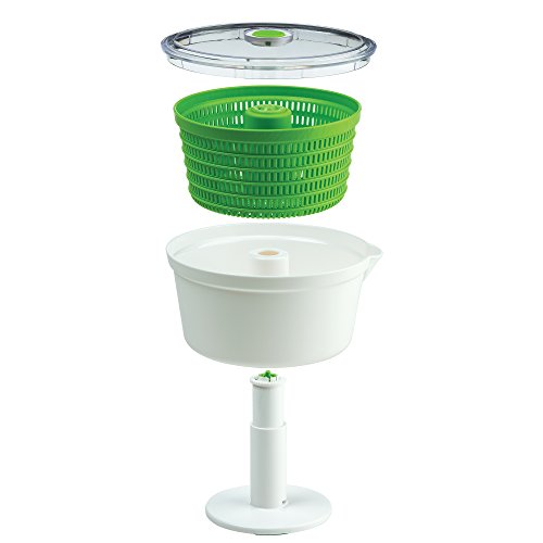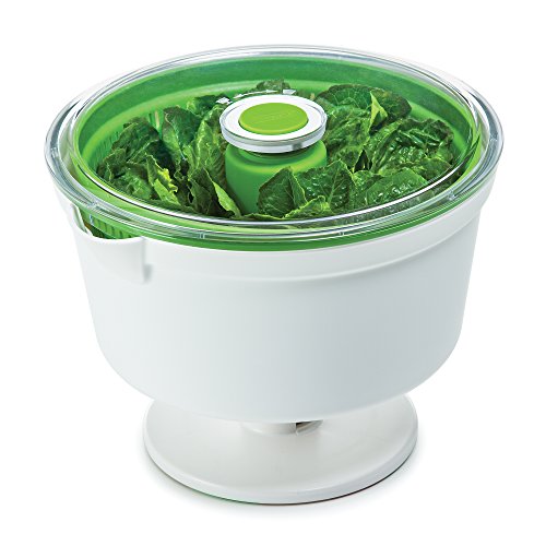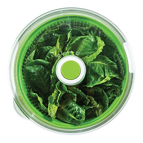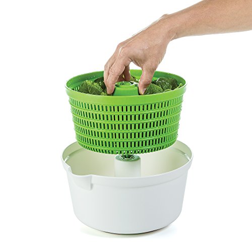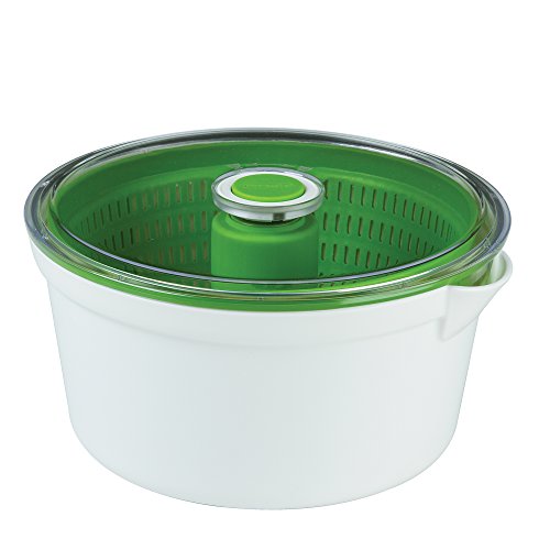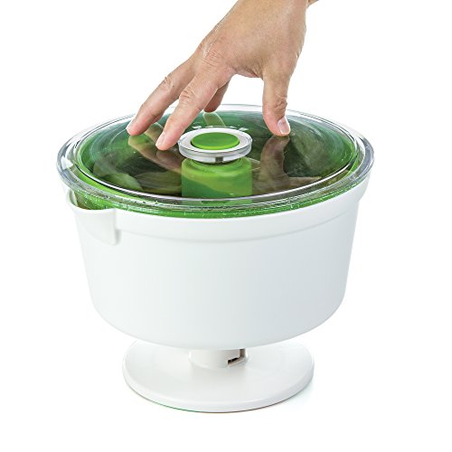 - Featuring a bright white and green scheme, the Easy Press Salad Spinner from Prepworks by Progressive has a large four quart capacity, which is perfect for a single salad or a salad for a shindig.