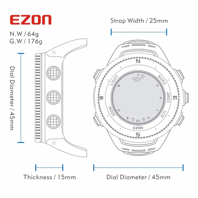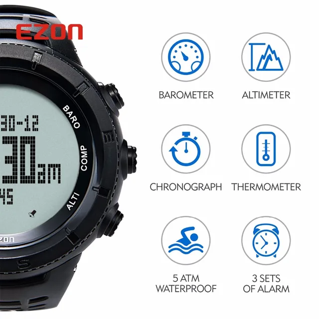 - 특징: 뒤 빛,경보,물 저항하는,다수 시간대,크로노그래프,고도계,나침반,연발총,기초시계,달력을 완료하십시오,온도 측정