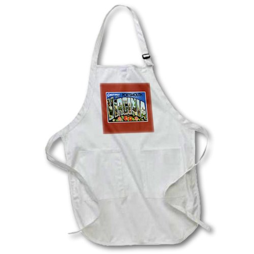 3dRose Greetings From Portsmouth Virginia Scenic Postcard Reproduction - Full Length Apron, 22 by 30-Inch, White, with Pockets (apr_170763_1)