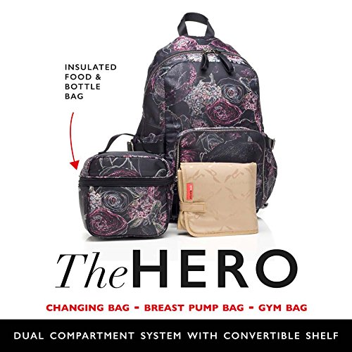 Studio : Storksak Publisher : Storksak Binding : Baby Product Product Description Do you need a hero? The Storksak Hero Diaper Backpack is here for you. Its style is only surpassed by its function - Use it as a diaper bag, breast pump bag, gym bag, weekender... Anything you can think of. Its spacious interior has a convertible shelf which effectively creates two separate compartments. The lower compartment is also fully laminated with a waterproof coating, making it ideal for storing breast pumps, drinks, bottles, or even gym gear. The Hero even comes with an insulated FAB (food and beverage) bag so you're ready for any adventure. It even includes a padded changing mat. We think that Black and Navy would be great for dads, too. What's not to love? Features: Includes luxury machine-washable padded change mat Includes matching FAB (food and beverage) bag Made from water-resistant nylon Convertible dual-compartment system - flip up or down to create one large or two small compartments Zipped front pocket to store changing mat, diapers, and wipes or your phone and wallet Laminated internal base compartment accessible from back zipper Compatible for storing most breast pumps Adjustable padded shoulder straps Signature Storksak wipe-clean lining throughout Dimensions: 13"W x 6"D x 16"H 0
