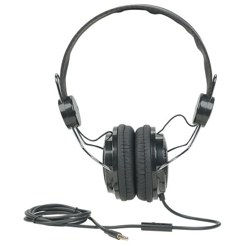 -. Feature : On-the-ear design provides comfort and enhances bass response / Adjustable headband and padded ear cushions provide secure, relaxed fit / In-line microphone helps reduce distortion and improve voice transmission / Single 3.5 mm connector for cell phone, MP3 player or tablet use / Convenient 3.5 mm splitter cable