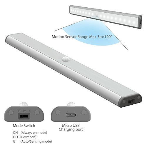 The latest version: Removable & USB rechargeable, energy-saving LED light, 3 different ways keep it instant on or off, or make it motion activated.